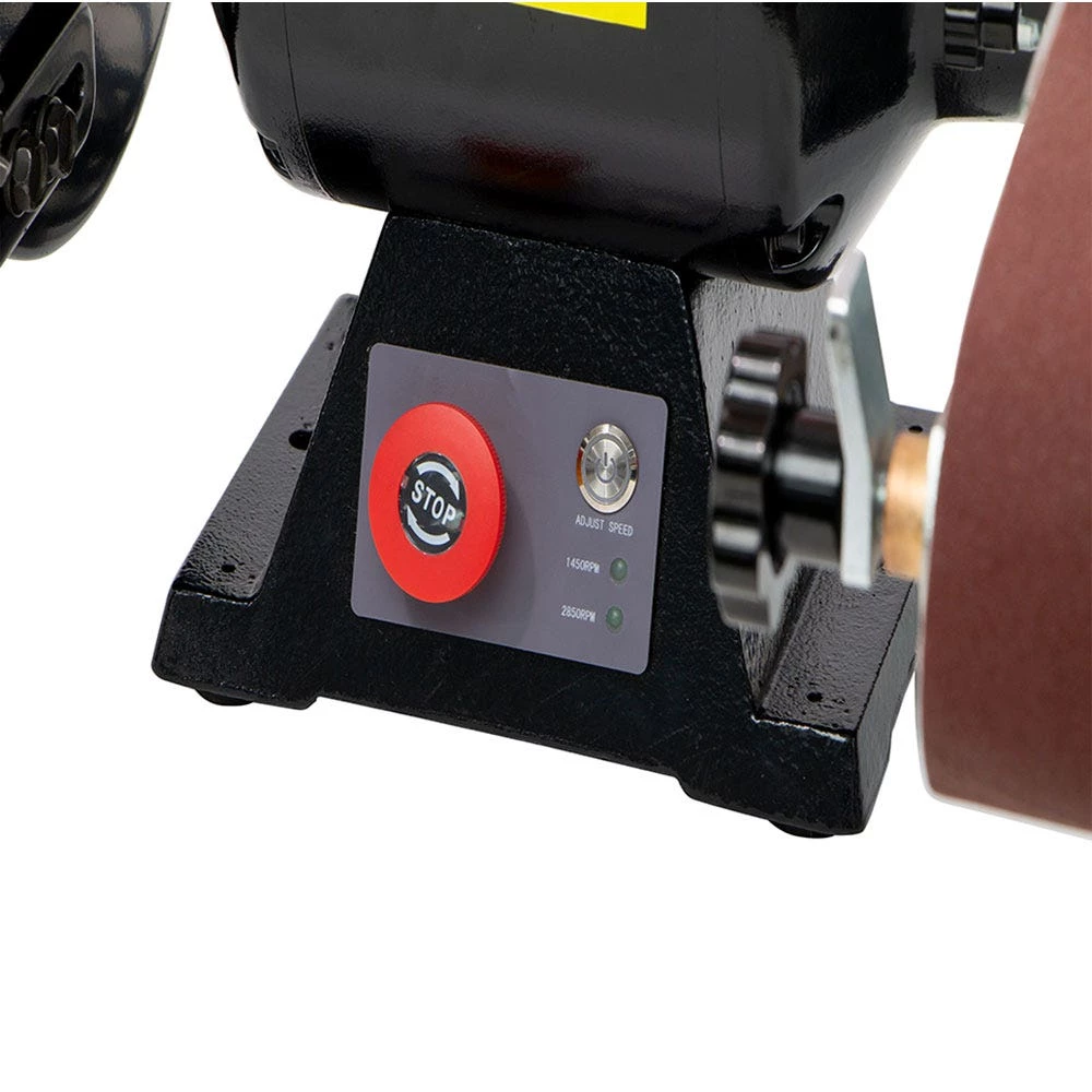 - High Speed (2880 RPM) is best for aggressive linishing and grinding on stronger materials (Carbon Steel, Copper, Cast Metals, etc.)