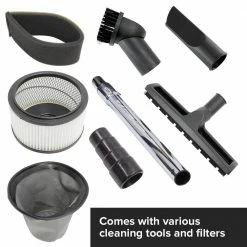 - Floor brush, crevice tool, brush tool, dust port adapter, telescopic wand and 2m flexible hose