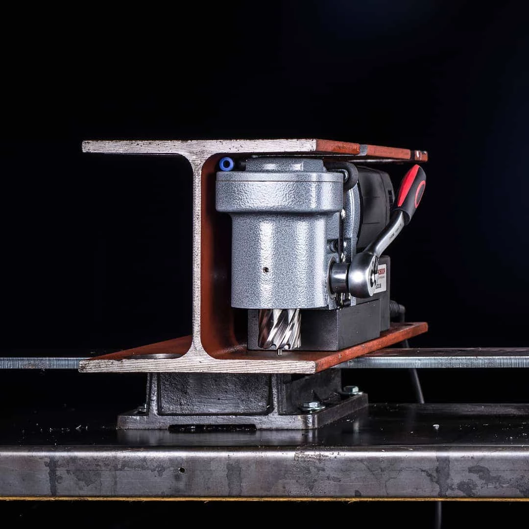 The Euroboor ECO.36 magnetic core drilling machine is the lowest drilling machine in the market, measuring only 165 mm (6 1/2″) in height. This magnetic core drilling machine is perfect for drilling in spaces with limited heights such as H-beams, steel structures, plates, profiles, etc. The portable ECO.36 is equipped with a powerful magnet, user friendly Quick Connect cutter fitment system, and easy release / lock feed handle for both left and right operation.