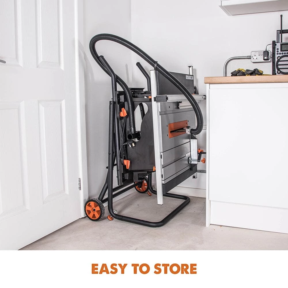 Utilising patented Evolution multipurpose cutting technology, the RAGE 5-S multipurpose table saw will easily cut steel, aluminium, wood and plastic using just one blade. The cut is fast clean and accurate, producing no burr and virtually no sparks when cutting steel. There is no heat build-up either, so the material is cool and can be handled straight away. This product gives the user an opportunity you can not find with any other table saws. The RAGE 5-S features a powerful hi-torque motor, clear and precise angle settings for mitre and bevel cutting. Additionally, the blade height can be adjusted for cutting a variety of materials. Furthermore, the built-in wheels allow for easy transportation/portability and the folding stand allows for easy storage. The RAGE 5-S is supplied with a R255-TCT multipurpose blade (28 teeth), with a 255 mm blade diameter and 25.4 mm bore diameter.