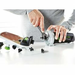 Convenient conversion. The modular design makes the MFK 700 a cost-effective all-rounder: Only the router table, and not the entire router, needs to be changed – and it is ideally equipped for all tasks involved in corner and edge trimming. Simply set down the right table and you can immediately route veneers or grooves, round edges, create profiles and much more.