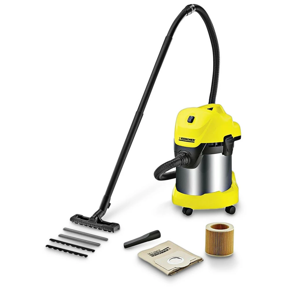 The Karcher MV3 Premium Wet and Dry Vacuum Cleaner makes vacuuming large spaces quick and efficient. This small industrial vacuum cleaner has a large 17 L capacity, a handy 4 m long power cord and can clean both wet and dry floors.
