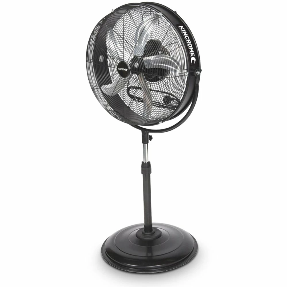 The 500mm (20”) Heavy Duty Internal Orbit Pedestal Fan is packed with features to assist and help you get the job done comfortably. Features such as an energy efficient induction motor, 3 speed switch, high velocity air flow, anti-trip base, heavy duty constructed adjustable height pedestal & safety grills, internal orbit action, 5 aluminium blade construction, rotatable and tiltable drum function. Delivering an impressive feature called ‘Internal Orbit Action’ this means the blades of the fan oscillate within the fans drum and safety grills eliminating any safety concerns when children may be present. The fan blade oscillates both side to side and up/down within the fan drum distributing air all around your work area without having the fan head swinging back and forth causing any distractions. The 5 aluminium blade construction is different to what is conventionally seen in the market delivering up to 5% more air velocity to most standard 3 blade fans available. With a cool air velocity of 82m³ per minute this unit is perfectly suited to ventilating small to medium areas inside or when in a covered area can be used outside. Featuring an anti-trip base that provides a stable platform for the fan and also means no bulky legs sticking out causing a trip hazard in your work area. The fan requires minimal assembly so you can ventilate the office, shed, workshop or jobsite quickly. With a tiltable drum and 360° rotatable fan drum you can position the fans air flow almost anywhere quickly and easily to ensure ventilation is provided exactly where your need it. The entire KINCROME fan range complies to all safety and standards requirements including testing conducted to tropical class T clause. KINCROME Heavy Duty fans are built tough and will last the distance when using them out in the field.