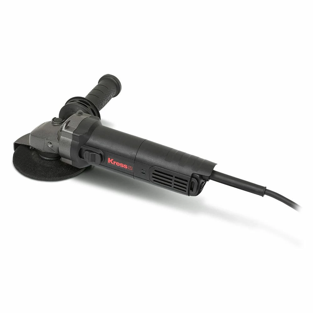 The KRESS 1400W 125mm Angle Grinder is designed with a slim body for improved comfort and control, and offers a constant speed control system. It features soft start and restart protection for additional safety, a detachable dust-proof grate which prevents debris damage in the vents, and auto stop carbon brushes which stop the motor when the brushes require replacing. The spindle lock button allows easy tool free disc change, and the side slide switch is easy to access. Includes 1 x 2 position auxilary handle, 1 x spanner & 1x wheel guard for grinding. Disc not included.