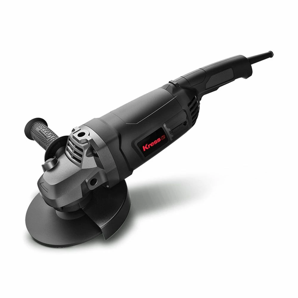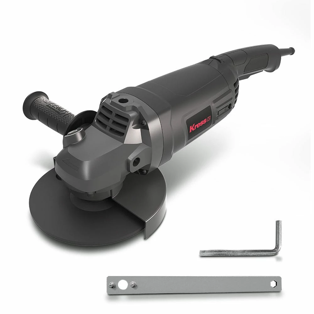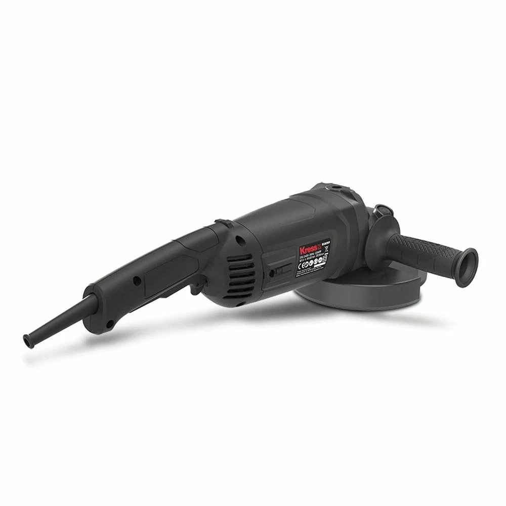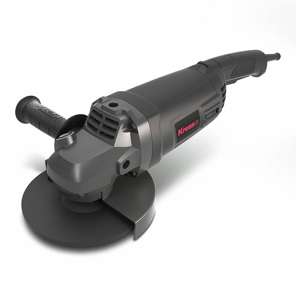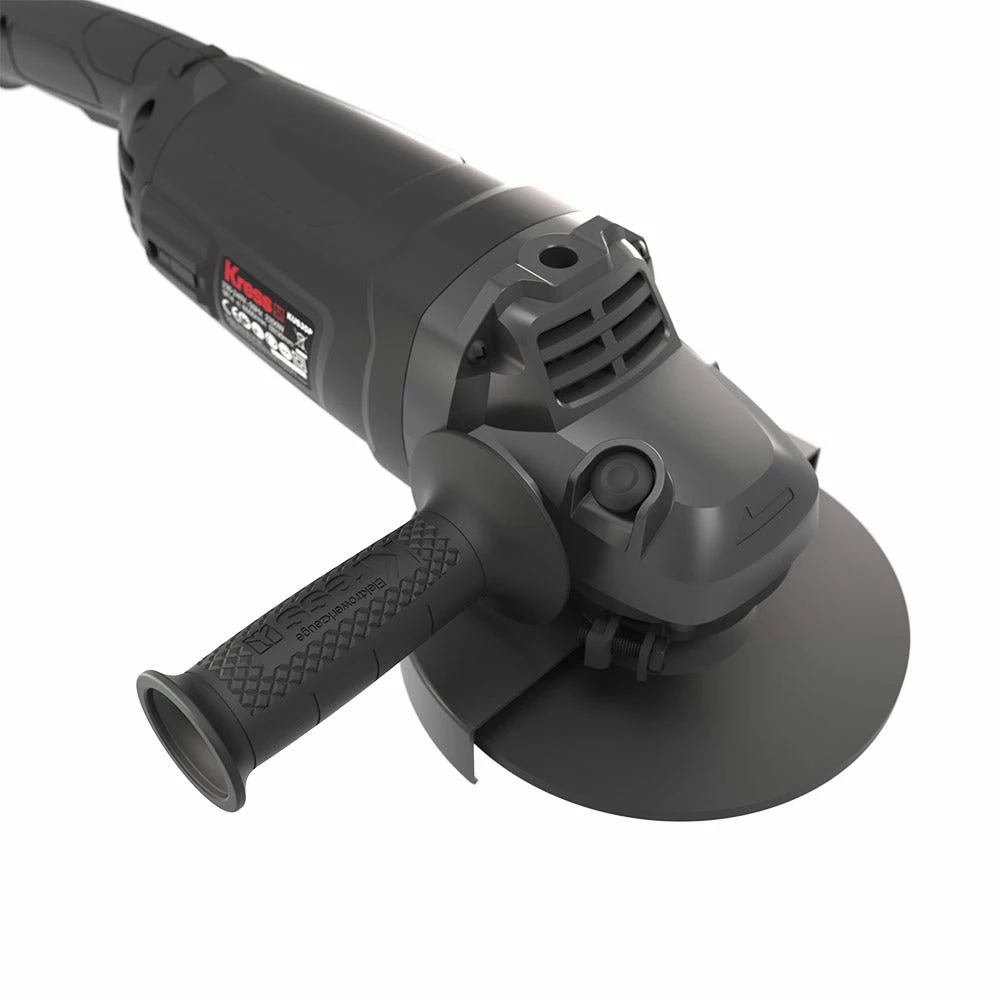 The robust KRESS 2200W 230mm Angle Grinders has a max output power of 3000W, with stron anti-overload ability. It features soft start and restart protection for additional safety, auto stop carbon brushes which stop the motor when the brushes require replacing, and the air vent design provides for improved ventilation and heat dissipation. The spindle lock button allows easy tool free disc change, and the side slide switch is easy to access. Includes 1x hex key, 1 x 3 position auxilary handle, 1 x spanner & 1x wheel guard for grinding. Disc not included.