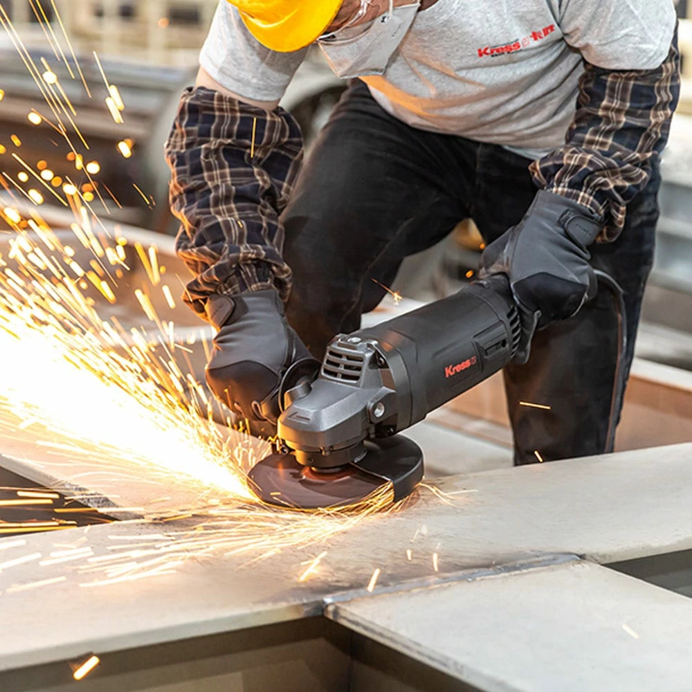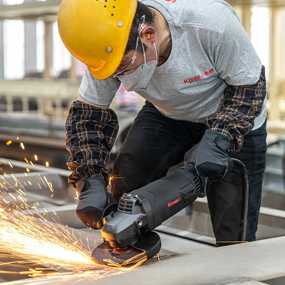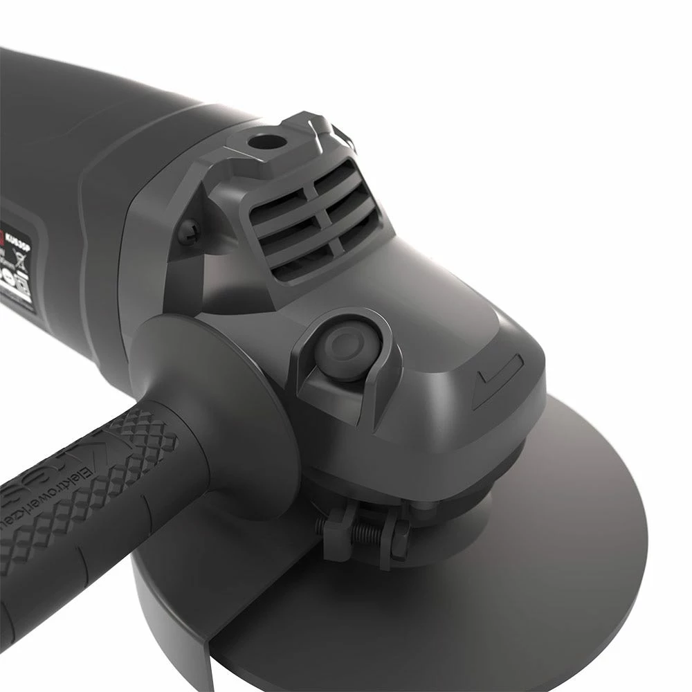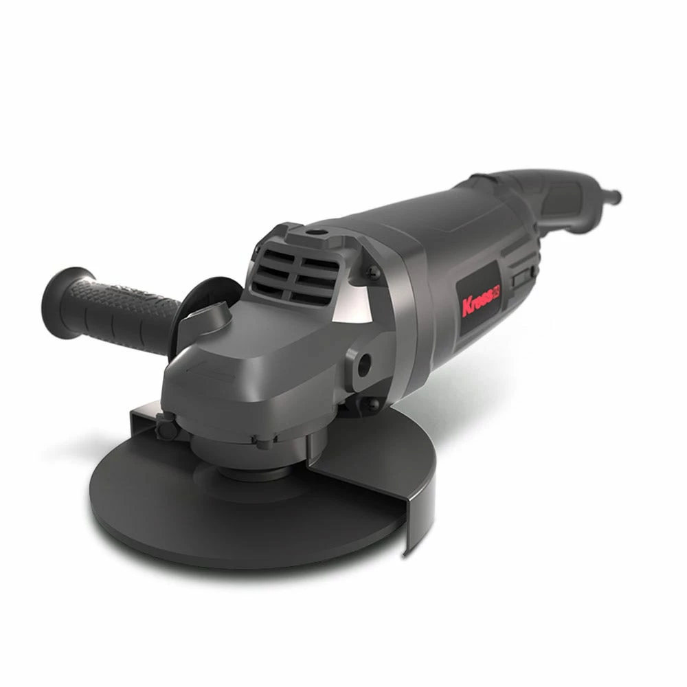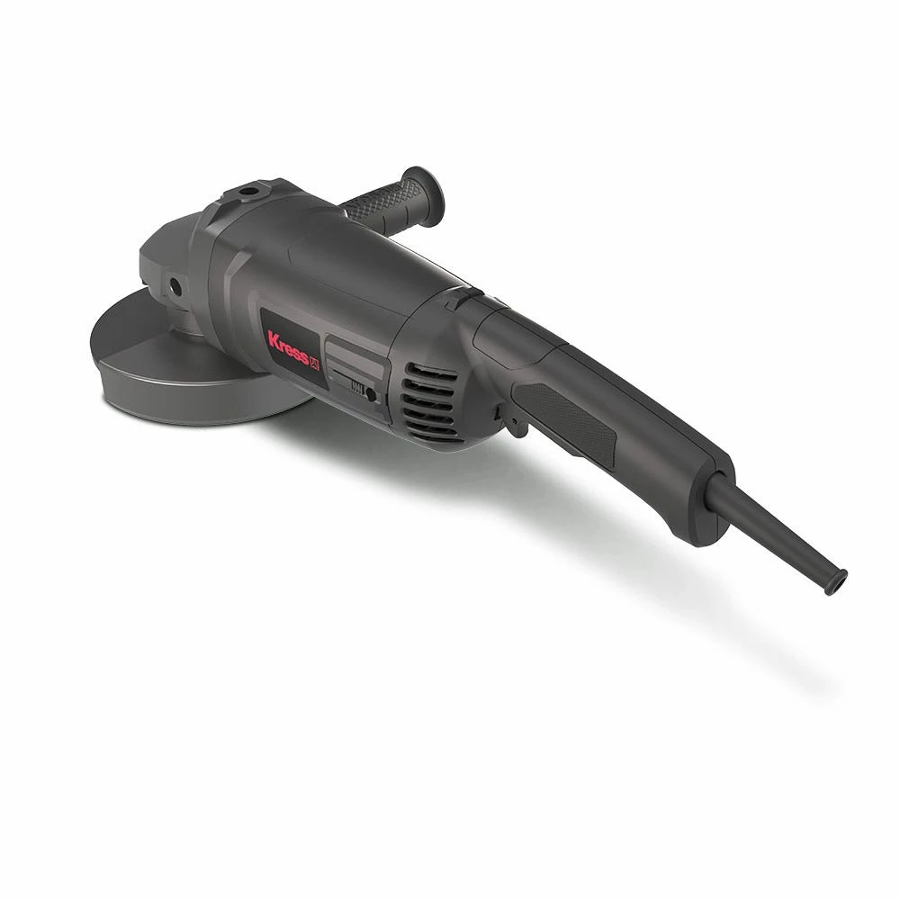 The robust KRESS 2200W 230mm Angle Grinders has a max output power of 3000W, with stron anti-overload ability. It features soft start and restart protection for additional safety, auto stop carbon brushes which stop the motor when the brushes require replacing, and the air vent design provides for improved ventilation and heat dissipation. The spindle lock button allows easy tool free disc change, and the side slide switch is easy to access. Includes 1x hex key, 1 x 3 position auxilary handle, 1 x spanner & 1x wheel guard for grinding. Disc not included.