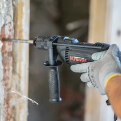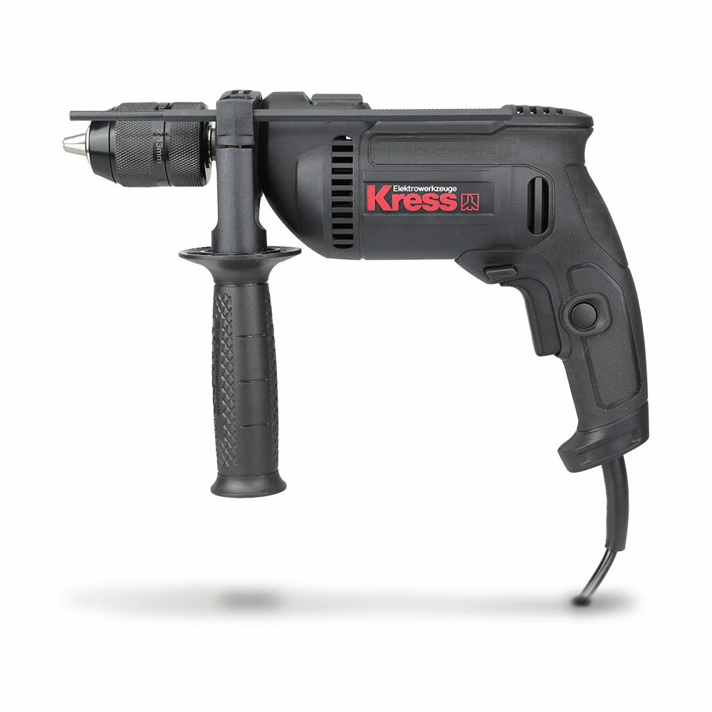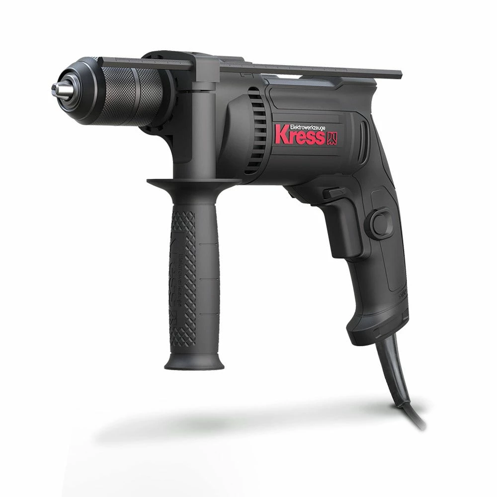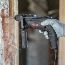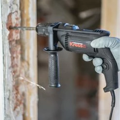 The KRESS 650W 13mm Hammer Drill features a robust all metal 13mm chuck for increased bit grip strength and no load variable speed up to 3000 RPM offers greater control when drilling, whilst the ergonomic soft grip design improves comfort and control. The lock on switch allows ease in continued operation. Includes: 1 x auxiliary handle, 1 x depth gauge, 1 x chuck key, and a sturdy carry case for storage and transport.