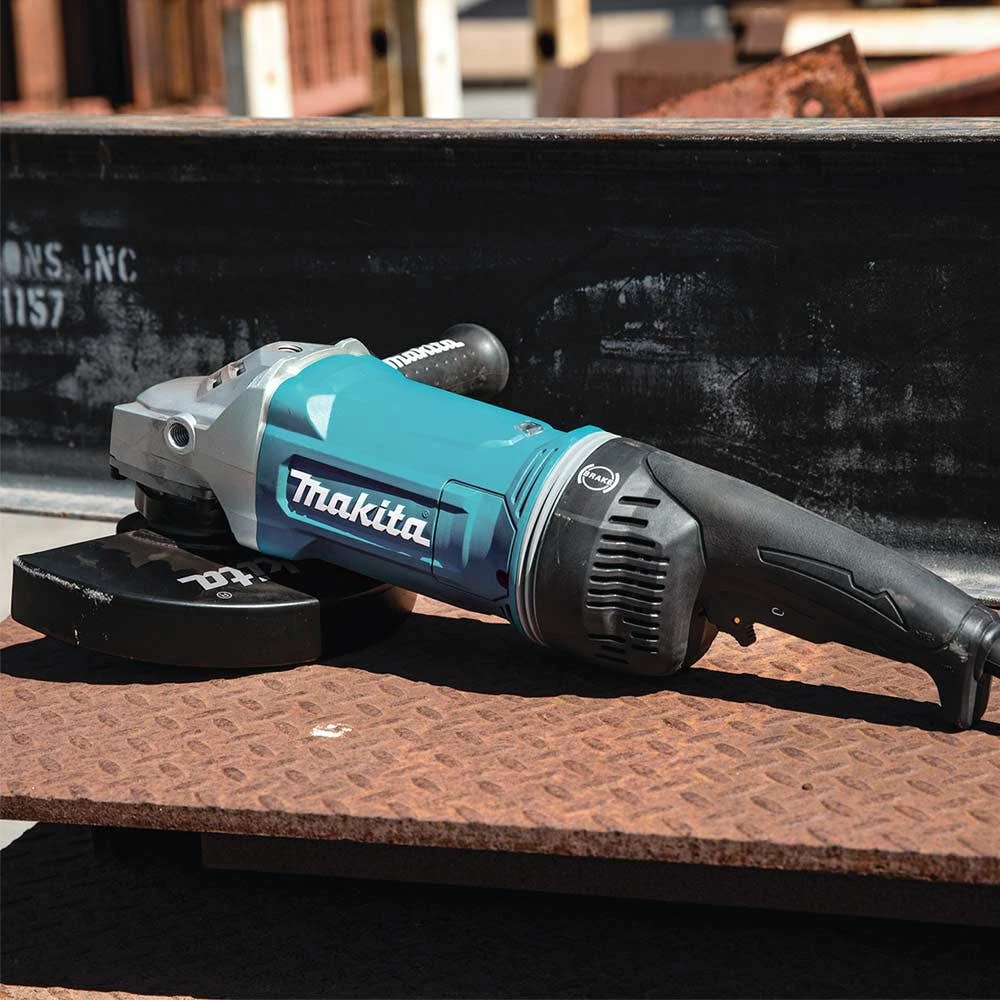 The 230mm (9″) Angle Grinder (GA9070X1) features a high-performance 2,400-watt motor for heavy-duty applications. Fitted with Active Feedback sensing Technology (AFT), the GA9070X1 can detect kickback or if the wheel becomes jammed and rotation ceases. In both cases, the tool will automatically shut down for safety.