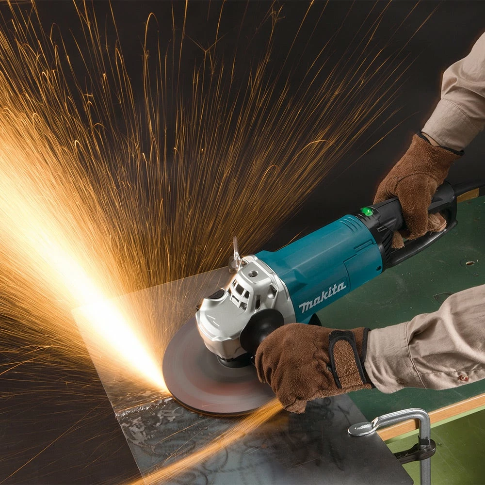 The Makita 230mm (9″) Angle Grinder (GA9063RX02) has been designed with high durability for heavy duty applications. Built with a D-handle design protecting the users hands the grinder also features soft start and anti restart for increased safety.