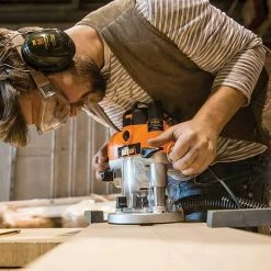 - Single button switches from plunge to fixed based router with rack and pinion adjustment