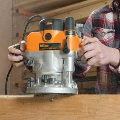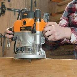 Powerful 2400W / 3-1/4hp electronically controlled motor. Single spanner ‘above table’ cutter changing. Automatic shaft lock and power lock-off during cutter change mode. Fast plunge depth adjustment with winder handle and fine depth adjustment with micro winder. Quick switching to conventional plunge mode. Removable plunge spring for easy lifting and adjustment. Effective dust port.